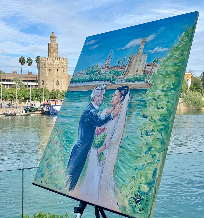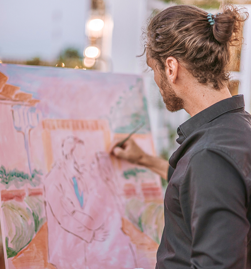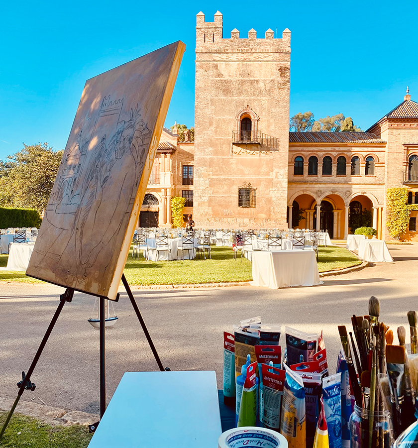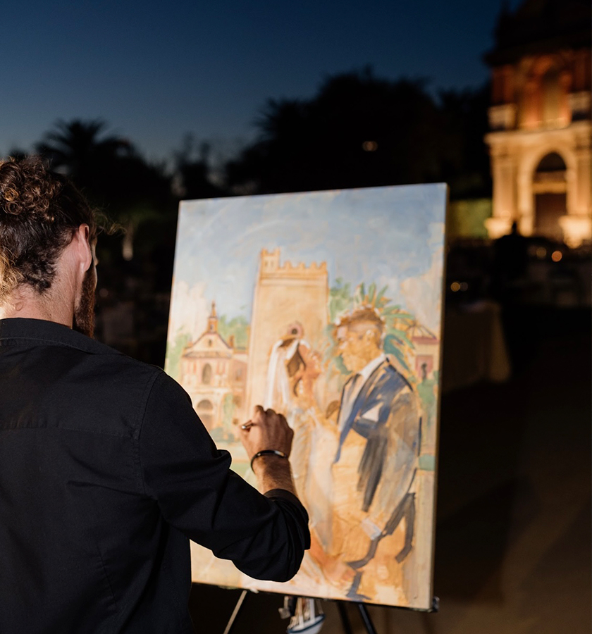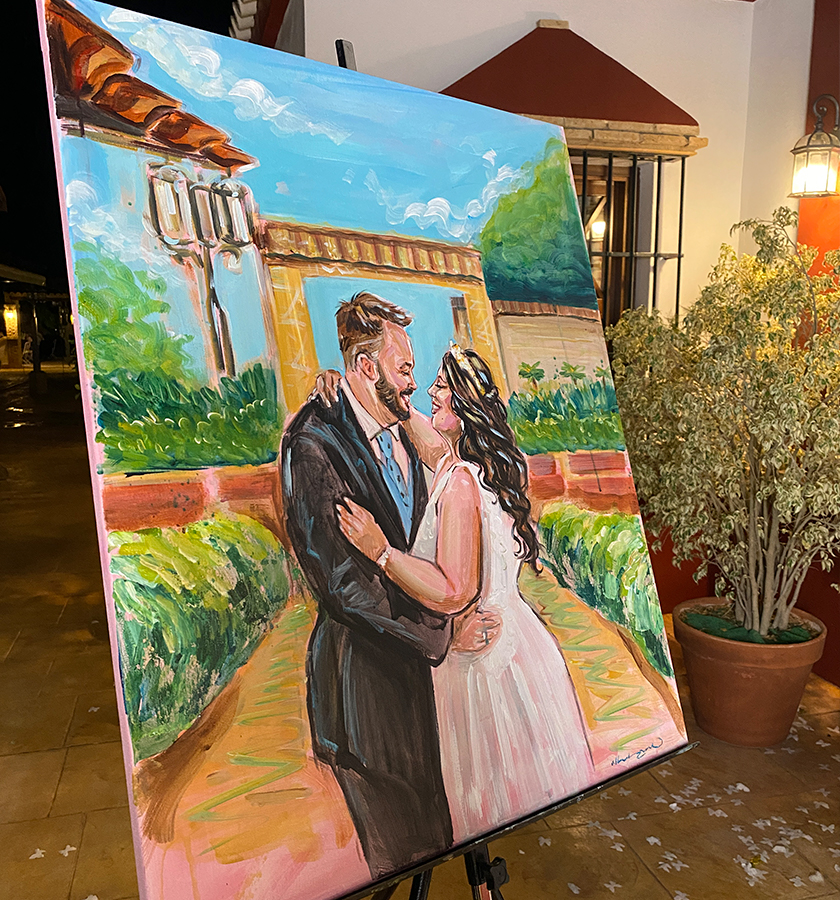 Cada pincelada es una narración visual: espontánea, vibrante y llena de personalidad. El resultado es una pieza creada en tiempo real que se convierte en el recuerdo más especial del día, un testimonio artístico que celebrará siempre la esencia de tu evento.