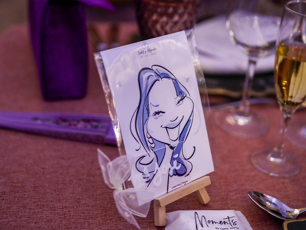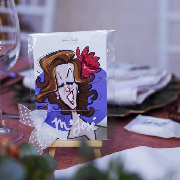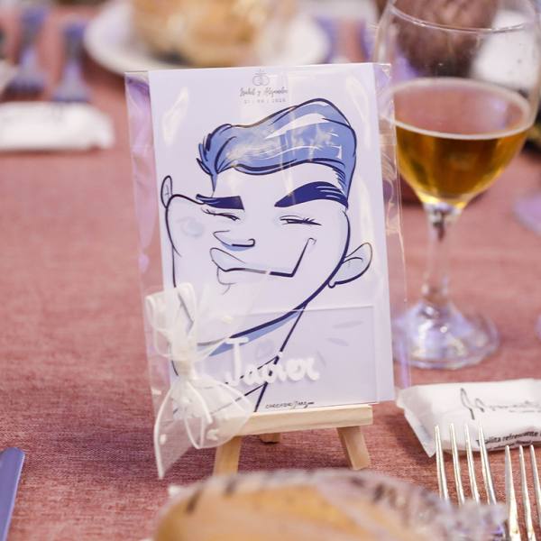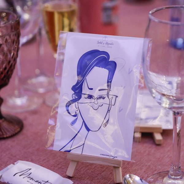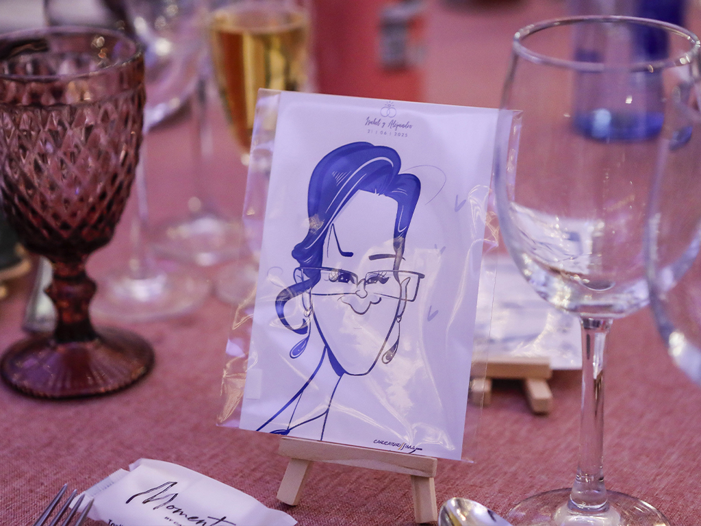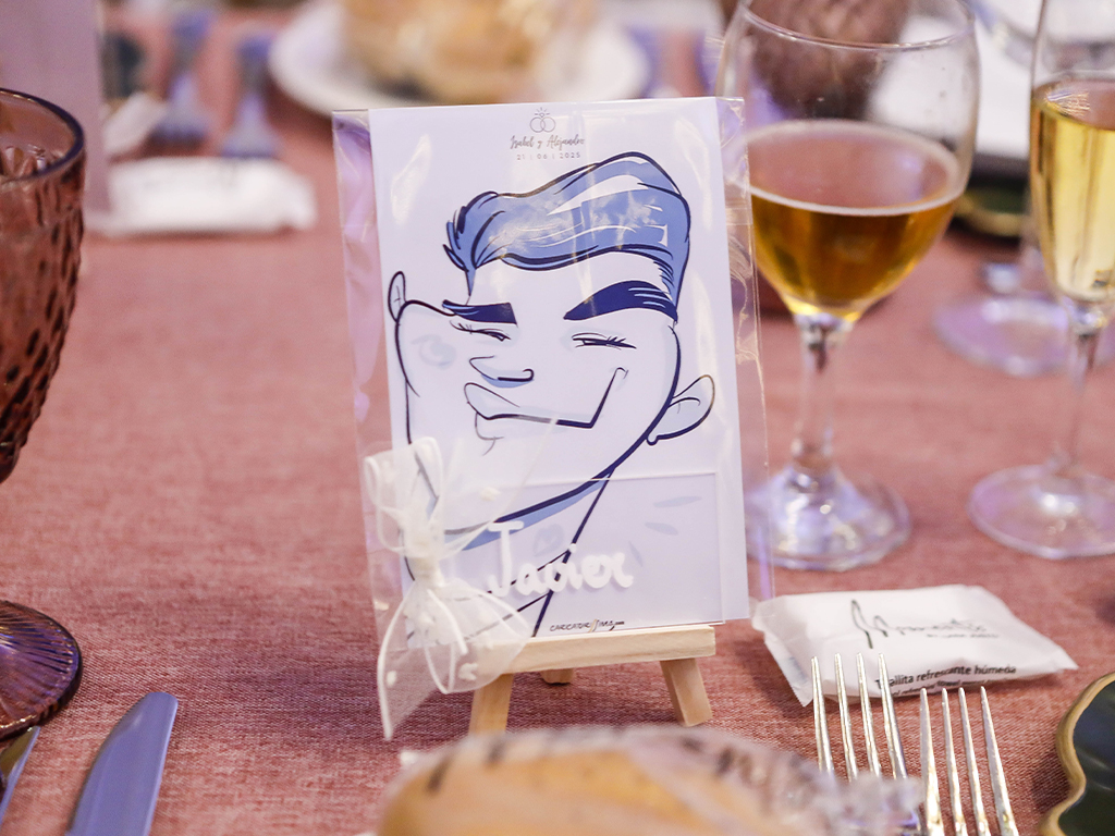 No es solo un indicador de dónde sentarse… es un recuerdo. Cada caricatura refleja rasgos, gestos y personalidad de la persona a la que representa, haciendo que el invitado se sienta especial desde el primer momento. Esa sorpresa inicial se transforma en sonrisa, conversación y un ambiente más cercano y distendido.