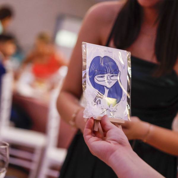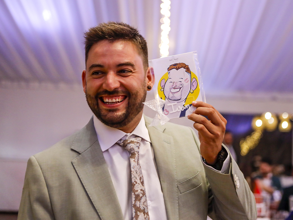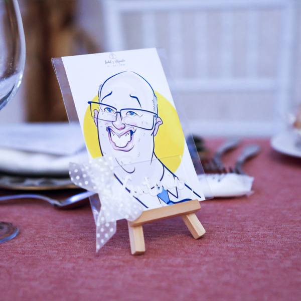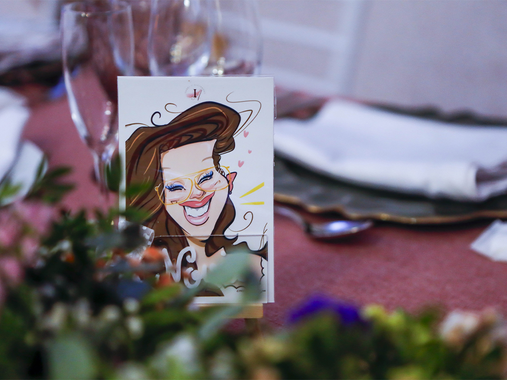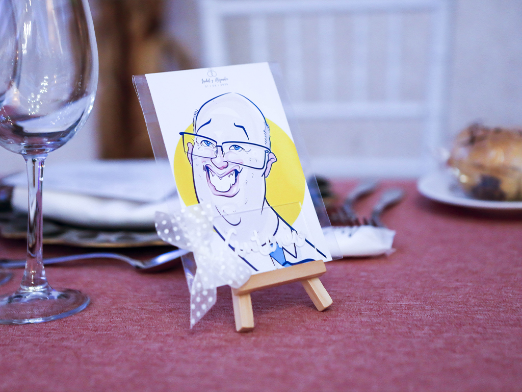 No es solo un indicador de dónde sentarse… es un recuerdo. Cada caricatura refleja rasgos, gestos y personalidad de la persona a la que representa, haciendo que el invitado se sienta especial desde el primer momento. Esa sorpresa inicial se transforma en sonrisa, conversación y un ambiente más cercano y distendido.
